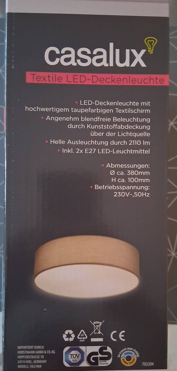 Mit hochwertigem Taubefarbigem Textilschirm.