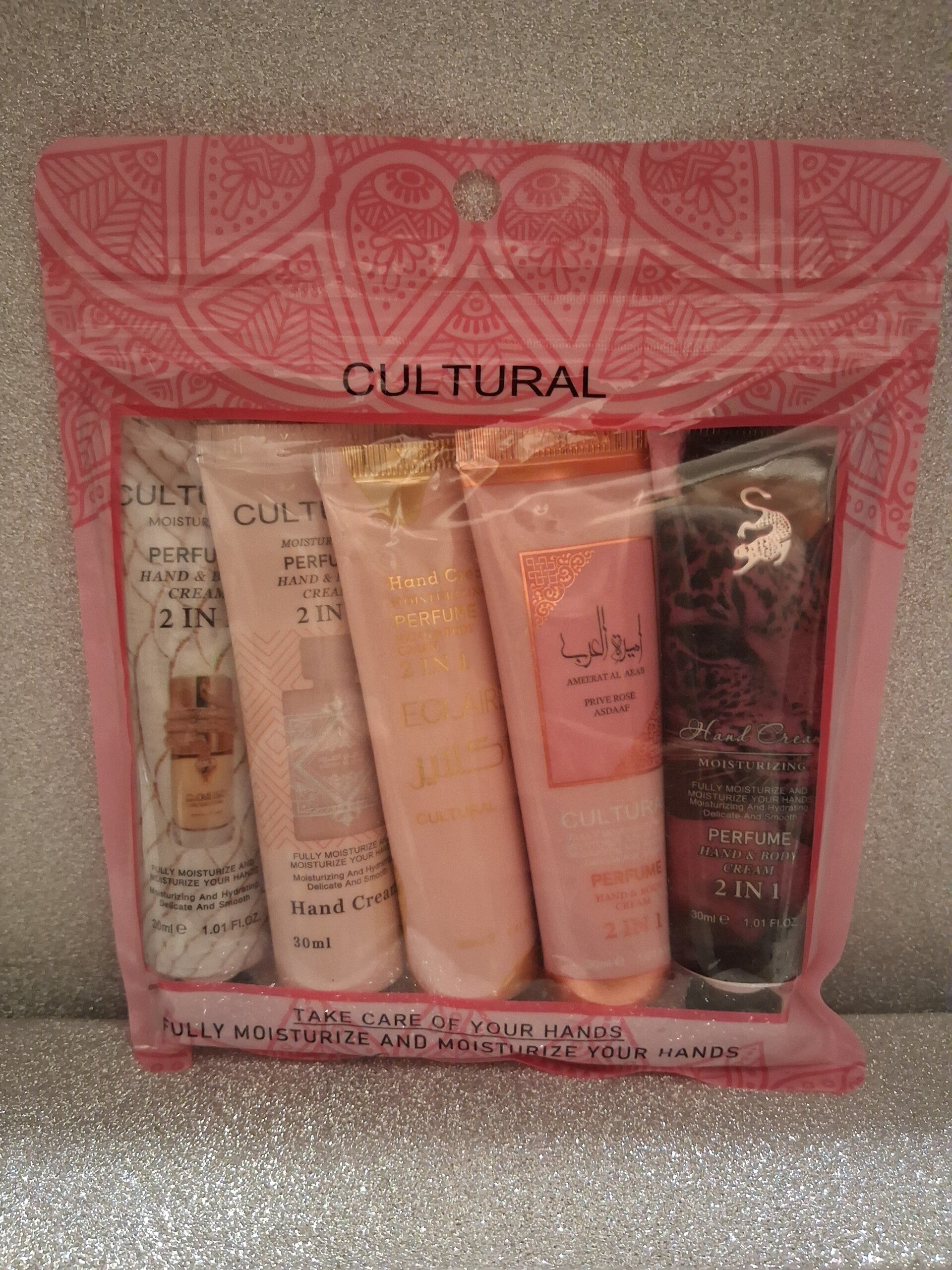 Gönn deinen Händen eine kleine Auszeit! Dieses elegante Handcreme-Set von CULTURAL kombiniert Feuchtigkeitspflege mit feinen, orientalisch inspirierten Duftnoten. Jede der fünf Cremes bringt ihren eigenen charakteristischen Duft mit – von pudrig-sanft bis warm-würzig. Perfekt, um sich selbst zu verwöhnen oder als kleines Geschenk.